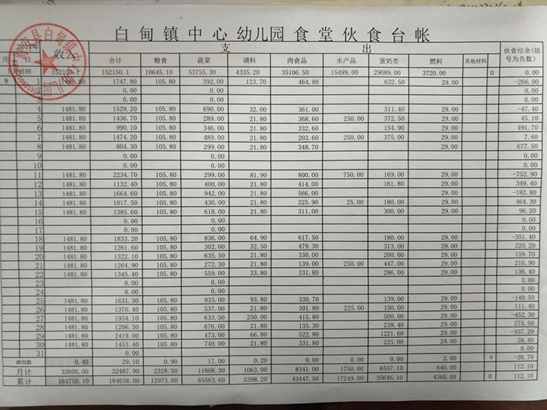 2017年9月白甸镇中心幼儿园食堂伙食账目公示